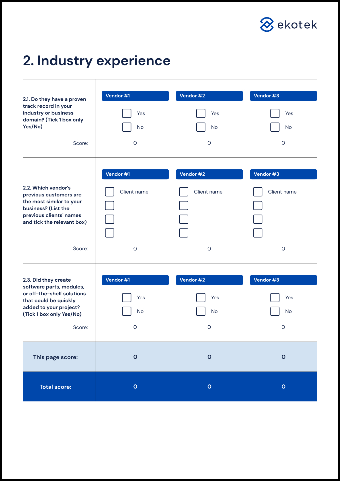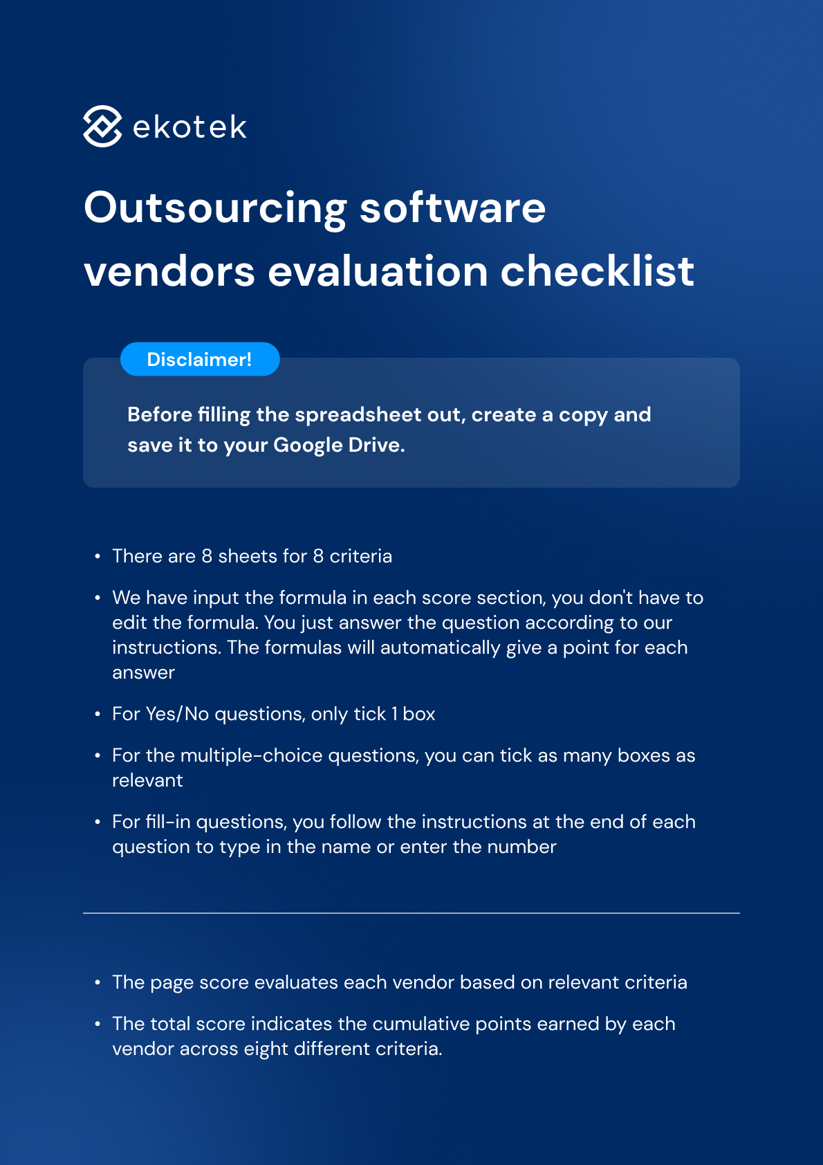 Criteria you can evaluate with the Outsourcing software vendors evaluation checklist