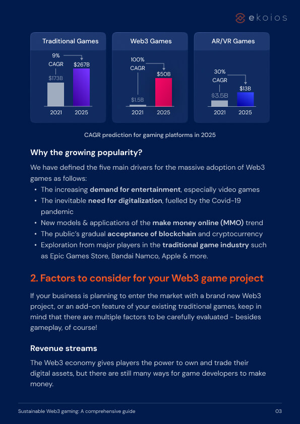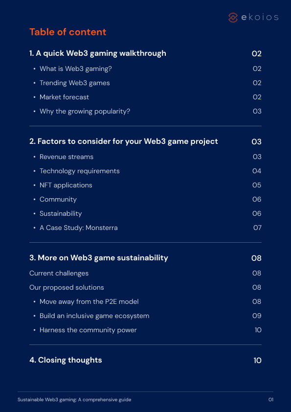 However, sustainability challenges arise as the majority of projects prioritize short-term gains over long-term viability. Our Ebook offers deep insights into this matter, along with innovative solutions so you can steer your Web3 gaming project towards a sustainable path.