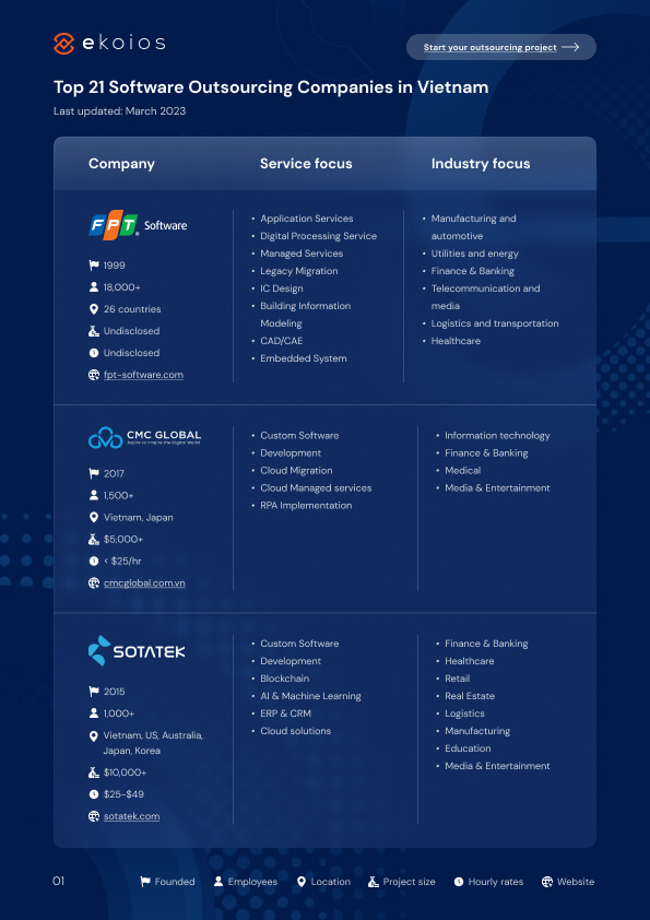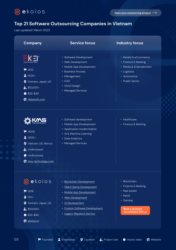 - The full list of top 20+ outsourcing companies in Vietnam.