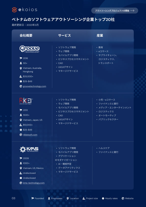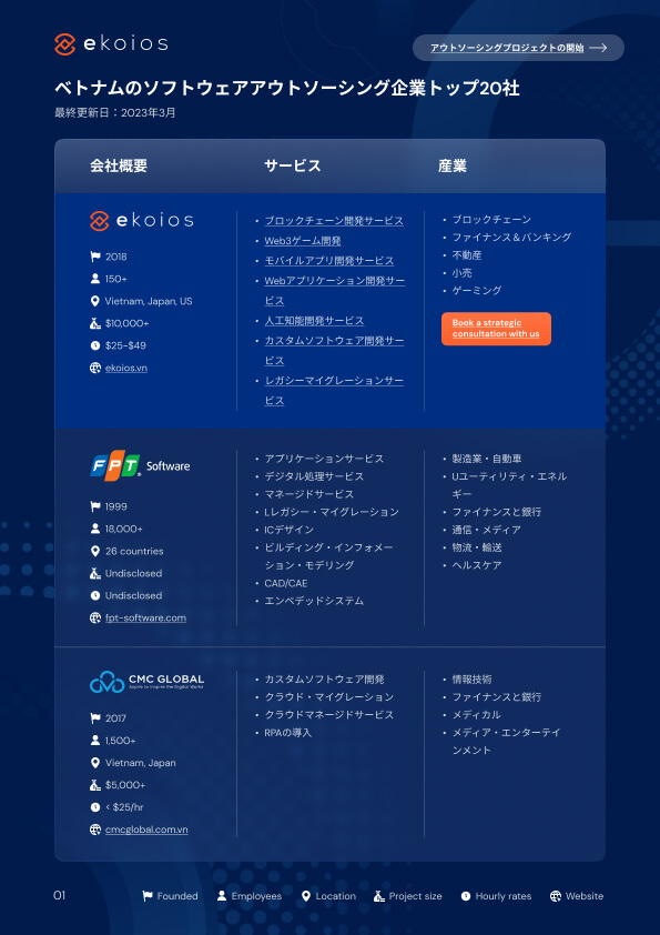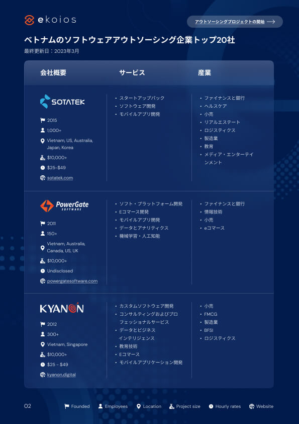 ホーム Ebook ベトナムのソフトウェア アウトソーシング企業 トップ20+社