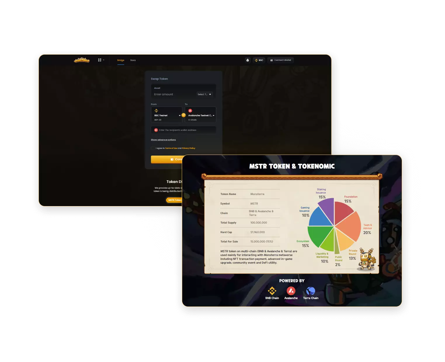 エコテックは、プロジェクト開始当初からクライアントのチームとコアパートナーとして協働してきました。タイトなスケジュールなロードマップが待ち受けていたため、まずはBNBチェーンでのゲーム開発を急ぎ、クロスチェーンブリッジやNFTマーケットプレイスといった主要機能を開発しました。BNB、Terra、Avalanche間でトークンを交換するブリッジはわずか1カ月で完成し、その後、BNB、USDT、BUSDの大規模P2P取引をサポートするNFTマーケットプレイスも完成しました。この記事を書いている時点では、2022年第3四半期の正式ローンチに向けて順調に進んでいます。