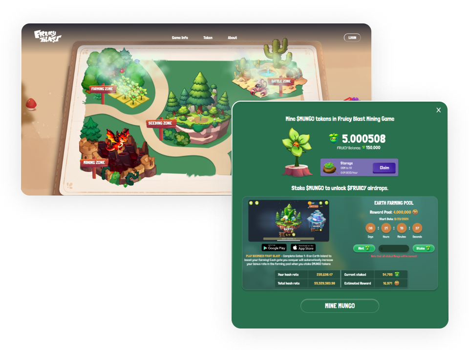 The client already had a mobile game and a long-term vision to develop a five-zone ecosystem, encompassing Farming, Mining, Seeding, Battle, and Bomber zones. To realize this vision, they sought a Telegram mini app to support their Mining zone and expand their game ecosystem to the Telegram platform. Meeting their requirements for compatibility, future scalability, and fast development posed unique challenges. With extensive experience in Web3 game development, Ekotek was well-equipped to deliver the solution on time and fully integrated into the client’s existing ecosystem.